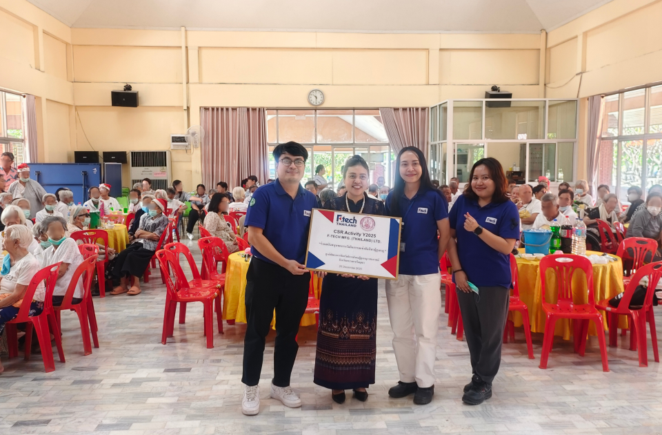 เมื่อวันที่ 25 ธันวาคม 2568 บริษัท เอฟ-เทค เอ็มเอฟจี. (ไทยแลนด์) จำกัด ได้ร่วมสนับสนุนชุดของขวัญมูลค่ารวม 5,000 บาท เพื่อใช้เป็นรางวัลในกิจกรรมงานส่งท้ายปีเก่าต้อนรับปีใหม่ ประจำปี 2569 ณ ศูนย์พัฒนาการจัดการสวัสดิการสังคมผู้สูงอายุวาสนะเวศม์ จังหวัดพระนครศรีอยุธยา